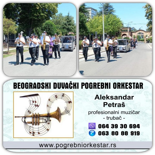 Orkestar za sahrane, duvački pogrebni orkestar, koji svira u svim gradovima Srbije, sastavljen od profesionalnih školovanih muzičara. Dugi niz godina krajnje profesionalno obavljamo ovu delatnost na sahranama, opelima, kremacijama, polaganjima urne, pomenima, ispraćajima. . . Nastupamo kao orkestar ali i pojedinačno, (truba, violina, crkveni hor. . . ) zavisno od želje klijenata. U repertoaru koji sviramo nalaze se pogrebni marševi, starogradske pesme, romanse, romske pesme, sevdalinke, klasična muzika. . . "Muzika i veselje dočekuju čoveka pri rodjenju, pesma ga prati kroz život i na kraju ona je opet tu da ga poslednja isprati"